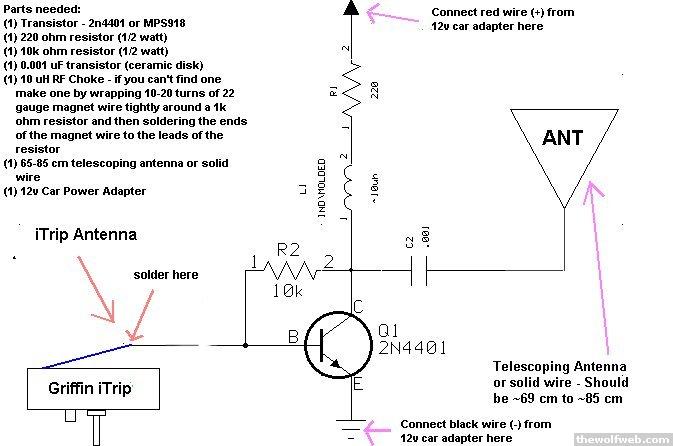 from what I've read the schematic needs a 0.01 uF transistor not 0.001any electronics nerds care to weigh in on this?I've got an old iTrip that I want to mod a bit so I can listen to music on my roof in style