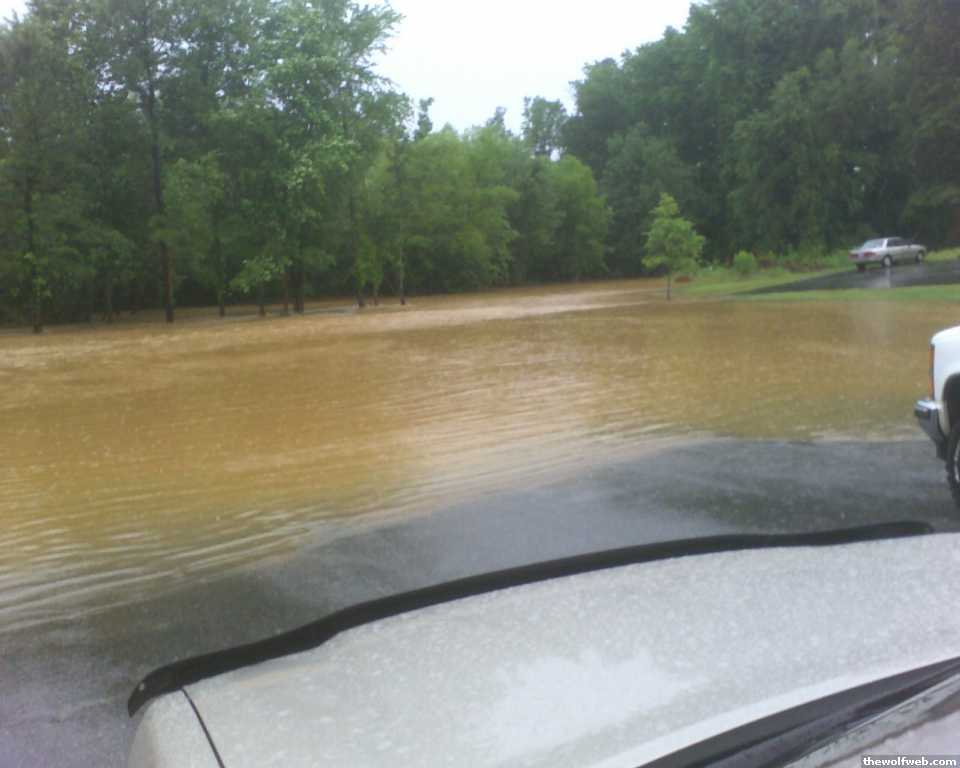 The toyota guy went blazing in to the parking lot, only problem was you could not see where the driveway was since it was in a few feet of water. The right tire went off the edge and then the front end dove down in the water. He had to get pulled out too. The thing actually fired up a couple of times afterward but it would not run (sputtered and then slowly died) we towed him back to University Woods.