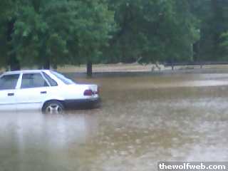 It was really sad how that car got swamped.It belonged to one of the teachers at that pre-school. She left with someone that worked there to pick her daughter up at school because they let out early. While she was gone the parking lot began to flood. Everyone else got their cars out of the way. No one at the school had her keys and so they could not move her car and before she got back it was pretty much submerged. We pulled it up the hill on to Trailwood and water began pouring out of it. When the teacher got back she opened the trunk which was filled slam full of stuff mostly books, notebooks, teaching supplies and stuff. She busted out crying. I mean it would be bad enough to have your brand new Honda totaled but to lose all that kind of stuff had to really suck.