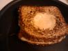 eggs in potato bread: flipped over: with provolone cheese: sammich: